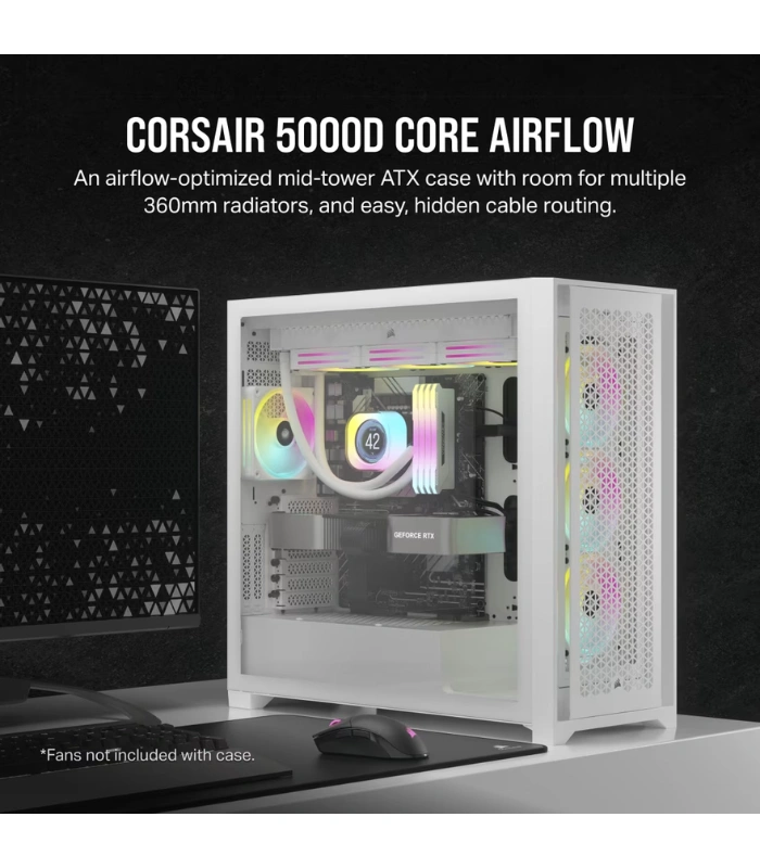 $139.99CORSAIR 5000D CORE AIRFLOW White — Caja ATX, Sin Fans, blanco