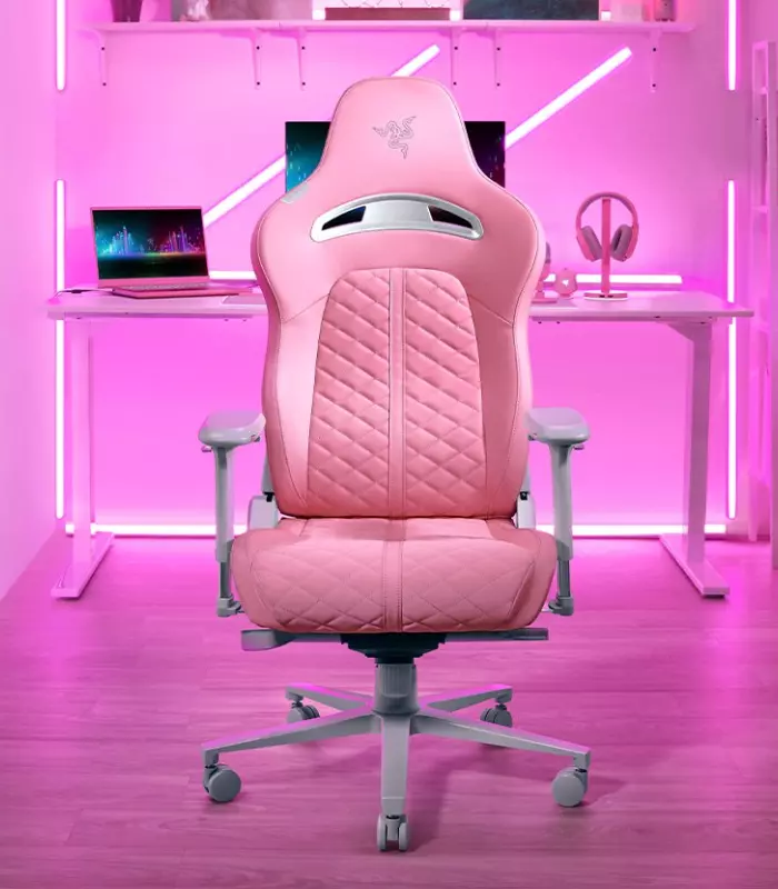 Razer Enki Quartz — Silla gamer, reclinable hasta 152°, hasta 299 libras, sin armar, rosa