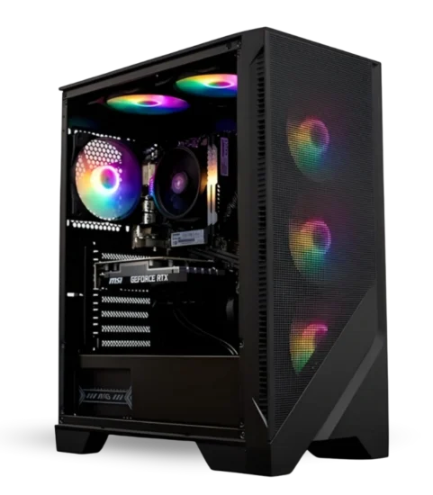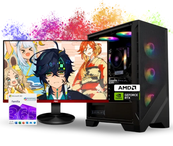 - Incluye Monitor Plano 24″, Full HD, 144Hz, VA