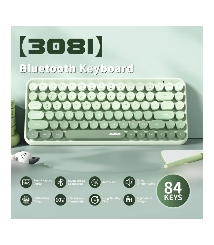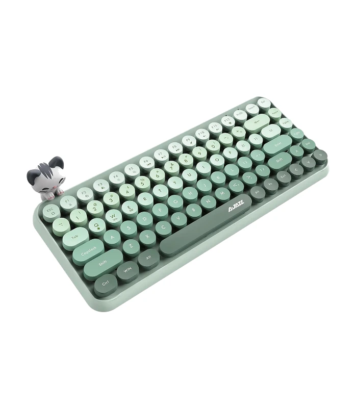El Ajazz 308i Milky Meow es un teclado inalámbrico compacto Bluetooth con un distintivo diseño retro y teclas redondas, conocido por su funcionamiento silencioso y portabilidad.