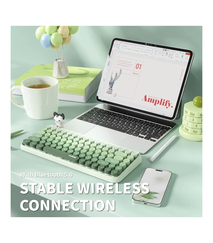 Los clientes mencionan con frecuencia que el teclado es «adorable» y tiene un color muy bonito. El tacto de las teclas y el sonido que producen son descritos como satisfactorios, aunque no son switches mecánicos. Su portabilidad y la facilidad de conexión Bluetooth a múltiples dispositivos (iPad, laptops, teléfonos) son puntos fuertes destacados.