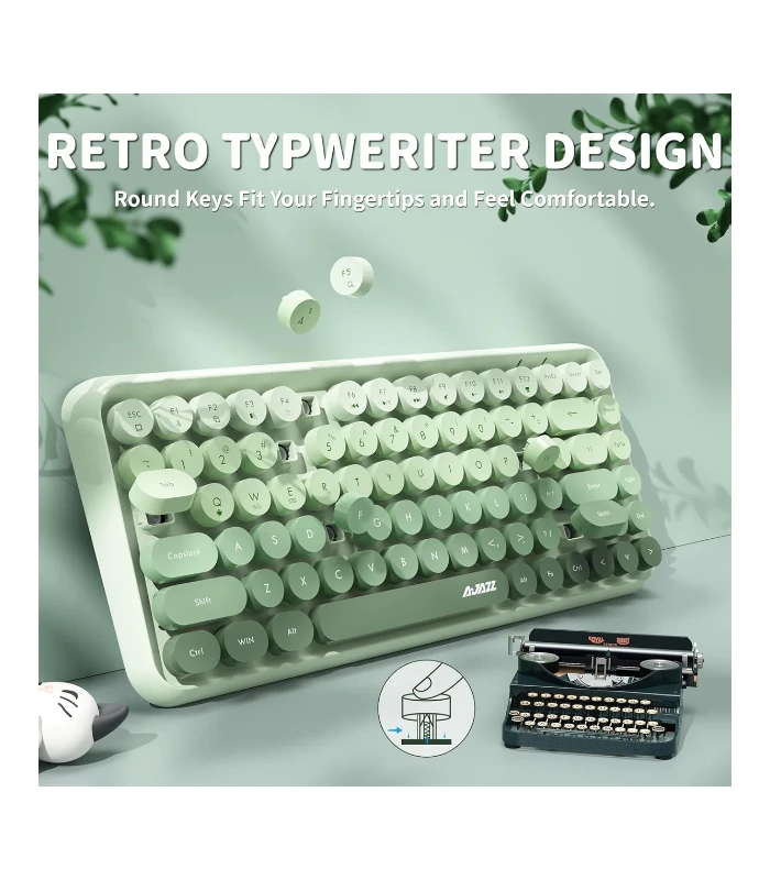 - Diseño: Presenta un diseño compacto de 84 teclas sin teclado numérico dedicado, con teclas redondas estilo máquina de escribir y un acabado mate.