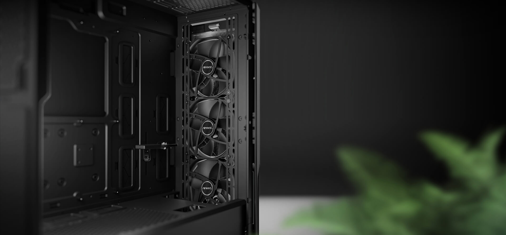 La Antec P20C es una caja de PC de torre media E-ATX diseñada para un flujo de aire masivo, con un panel frontal de malla metálica, tres ventiladores PWM de 120 mm preinstalados y un panel lateral de vidrio templado.