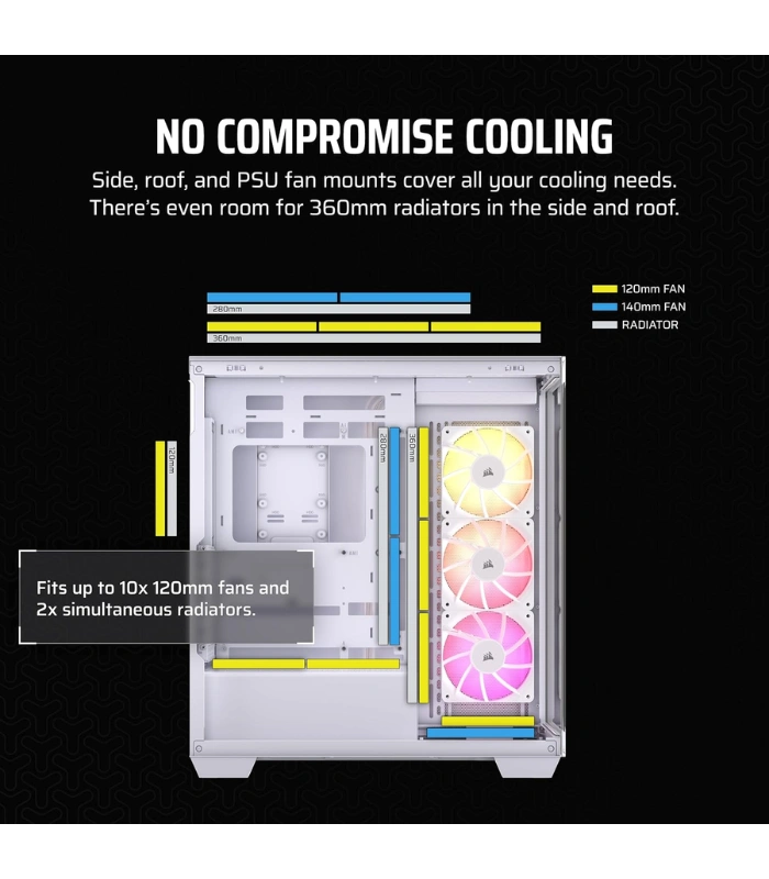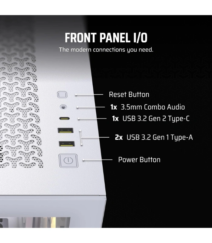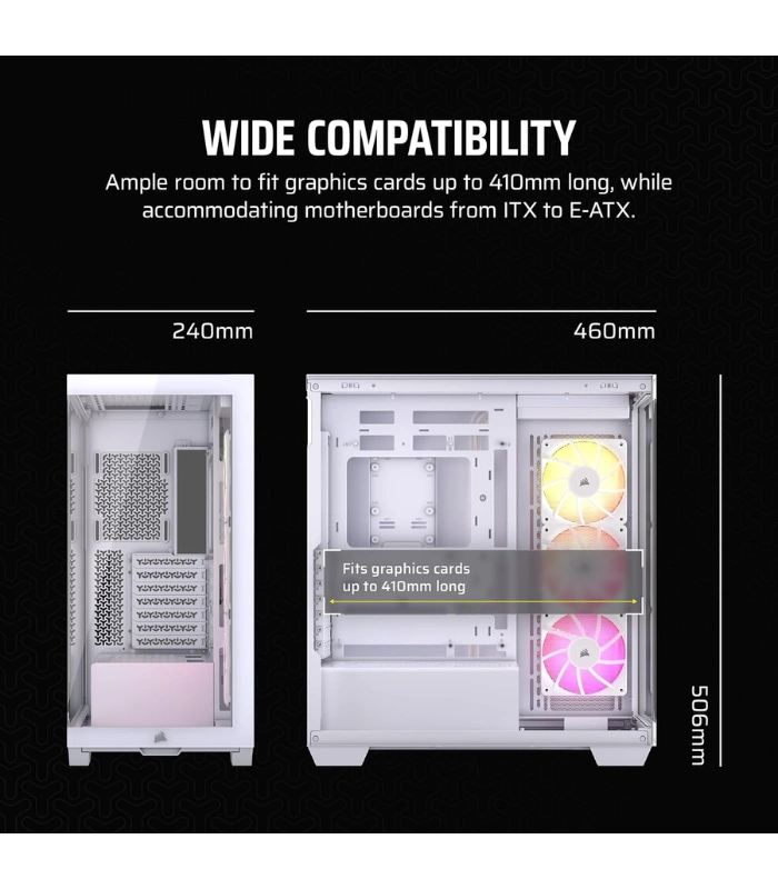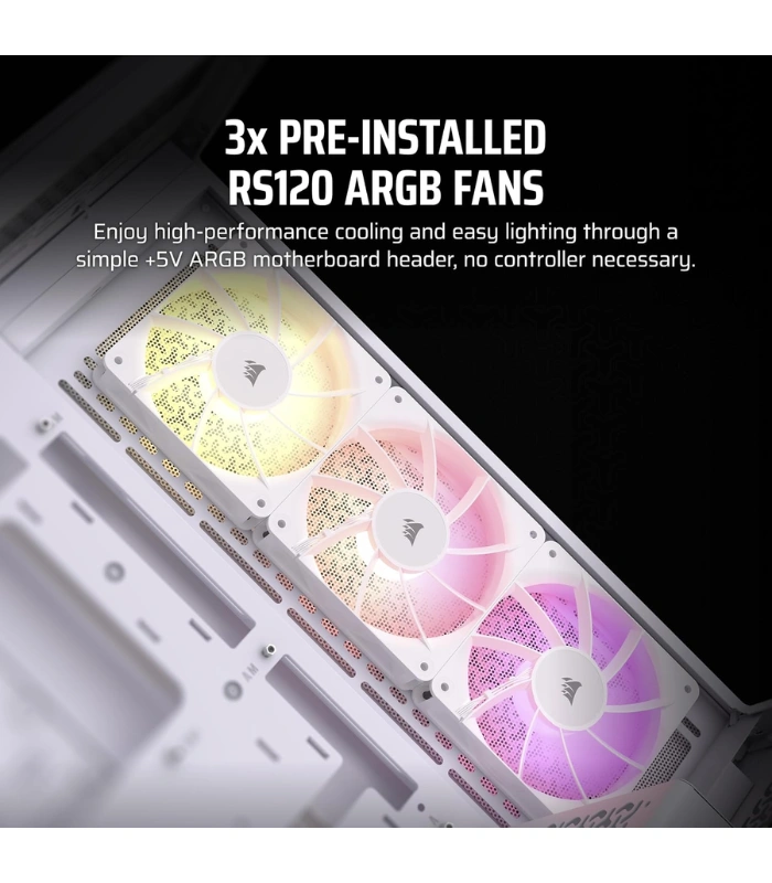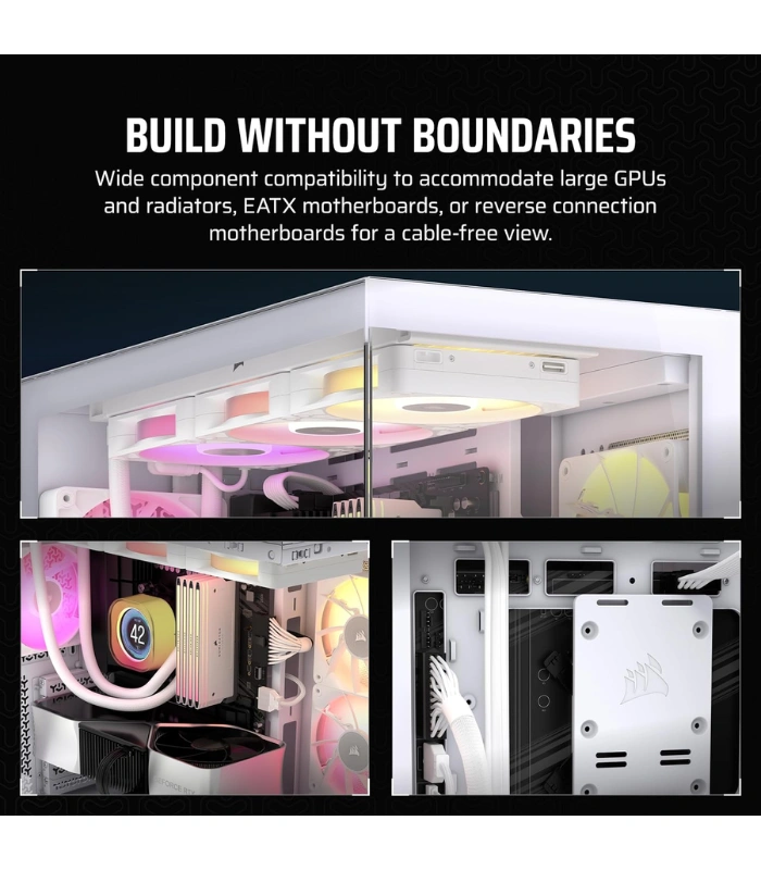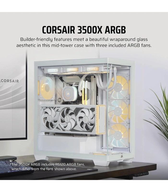 El chasis para PC de cristal CORSAIR iCUE LINK Corsair 3500X ARGB semitorre combina elementos que facilitan el montaje con una impresionante estética de cristal envolvente y el potencial de refrigeración necesario para un PC espectacular.