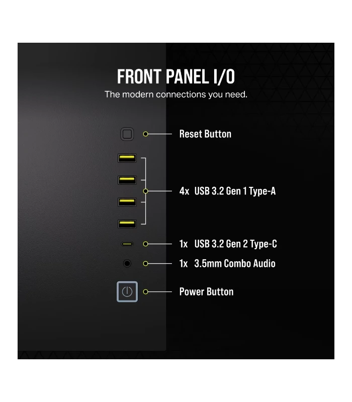 • Conectividad Frontal: Incluye un puerto USB 3.2 Gen 2 Type-C, cuatro puertos USB 3.2 Gen 1 Type-A y un conector de audio/micrófono.