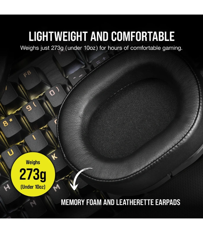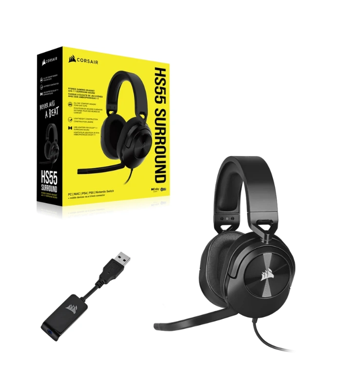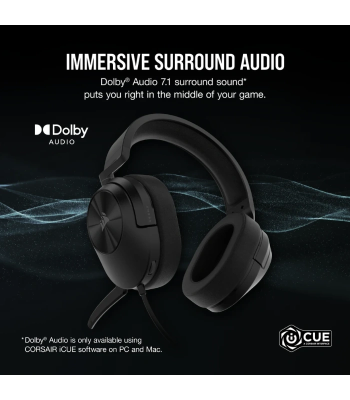 Los auriculares para juegos CORSAIR HS55 SURROUND ofrecen una comodidad durante todo el día y una calidad de sonido esenciales con almohadillas de espuma viscoelástica y polipiel, con sonido envolvente Dolby Audio 7.1 en PC y Mac,