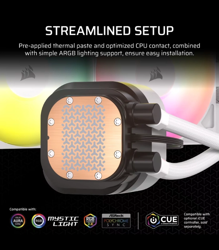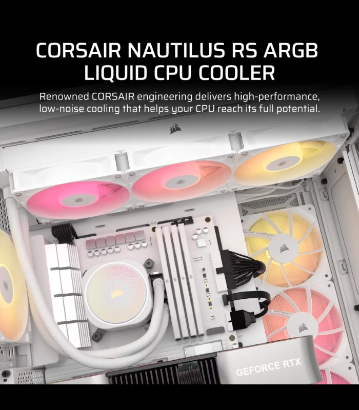 La refrigeración líquida de CPU Corsair Nautilus 360 RS ARGB ofrece un enfriamiento eficiente y silencioso con una conectividad sencilla: no requiere controlador, se conecta directamente a la placa base.