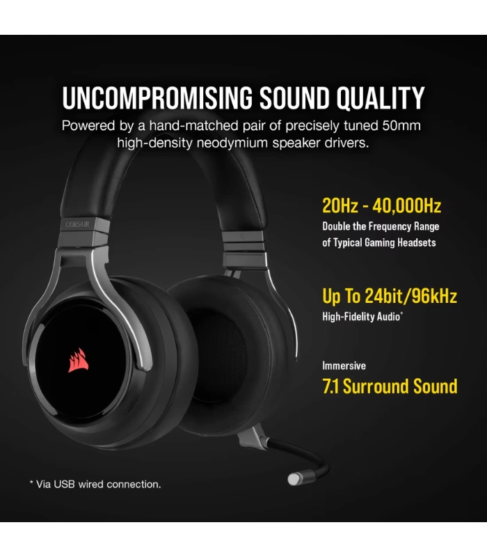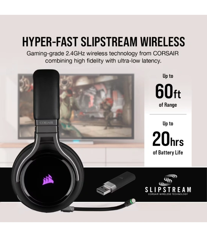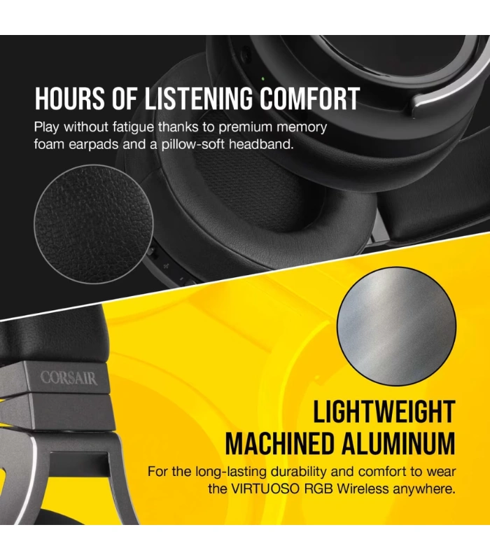 Los Corsair VIRTUOSO RGB ofrecen una experiencia de sonido de alta fidelidad y una comodidad continua gracias a las orejeras de espuma con memoria premium y una conectividad hiperrápida con tecnología SLIPSTREAM WIRELESS.