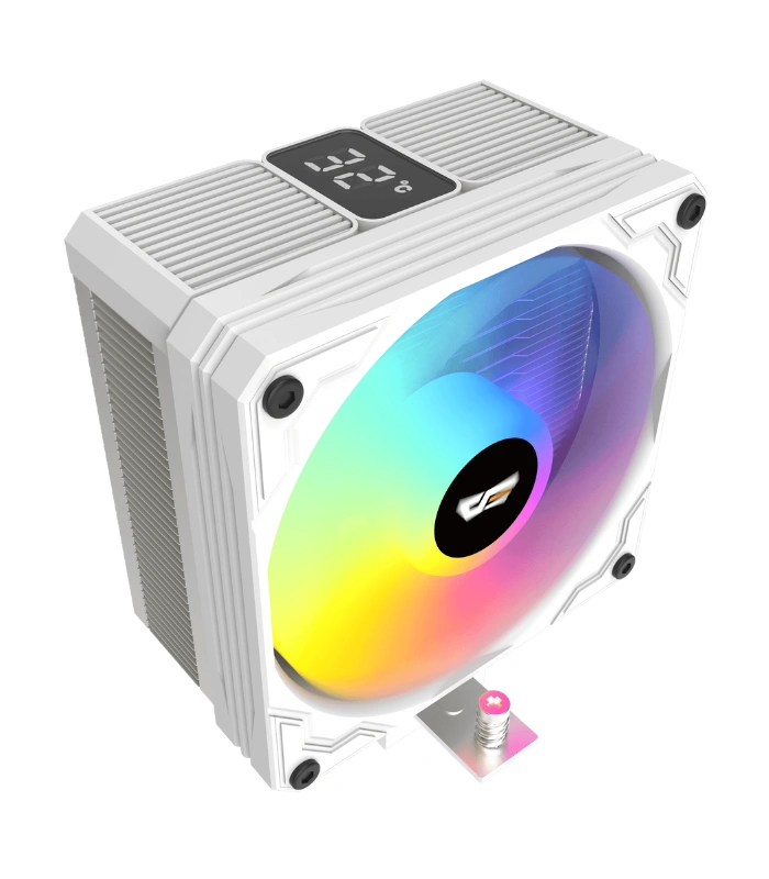 El DarkFlash M400 es un disipador de aire para CPU con una pantalla digital para mostrar la temperatura en tiempo real. Está diseñado para ofrecer una refrigeración eficiente y silenciosa con un diseño de torre y un ventilador de 120 mm.