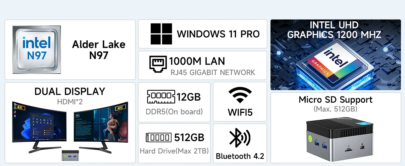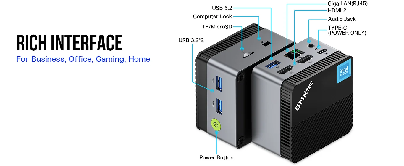 La GMKtec NucBox G5 es una PC de tamaño ultracompacto, ideal para espacios reducidos como oficinas en casa, dormitorios o centros de entretenimiento.