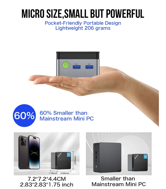 La GMKtec NucBox G5 es una PC de tamaño ultracompacto, ideal para espacios reducidos como oficinas en casa, dormitorios o centros de entretenimiento.