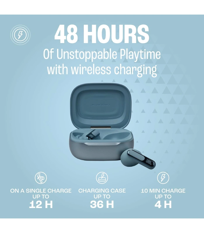 Los transductores dinámicos de 10 mm de los JBL Live Beam 3 incorporan el sonido JBL Signature. Cada transductor está perfectamente ajustado para ofrecer graves profundos, medios equilibrados y agudos refinados, todo ello a cualquier nivel de volumen