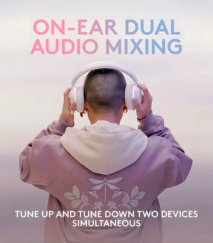 - Mezcla de audio doble: escucha 2 dispositivos con los auriculares
