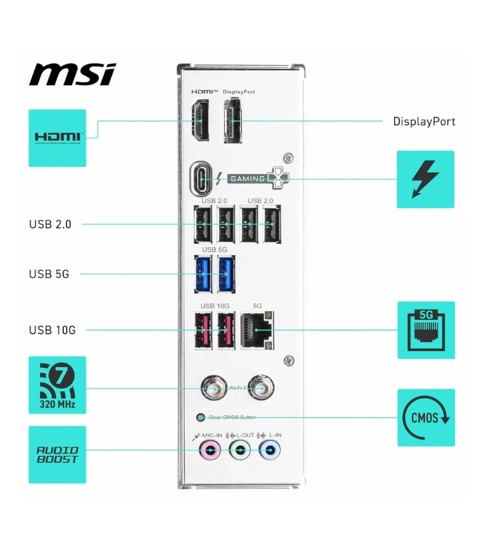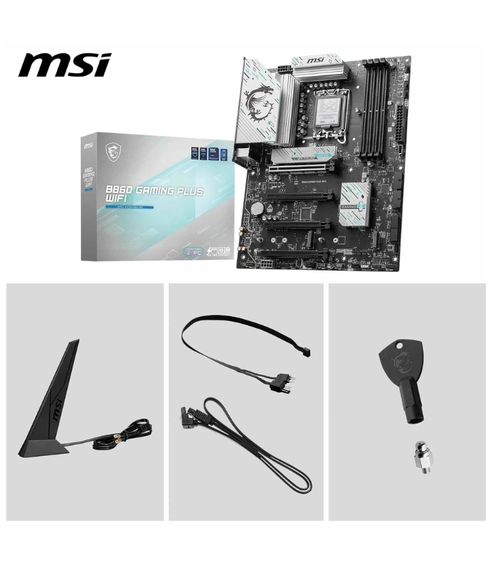 El MSI B860 GAMING PLUS WIFI está diseñado para ofrecer una amplia conectividad, herramientas versátiles y una solución Wi-Fi de primera calidad para jugadores que buscan una experiencia integral.
