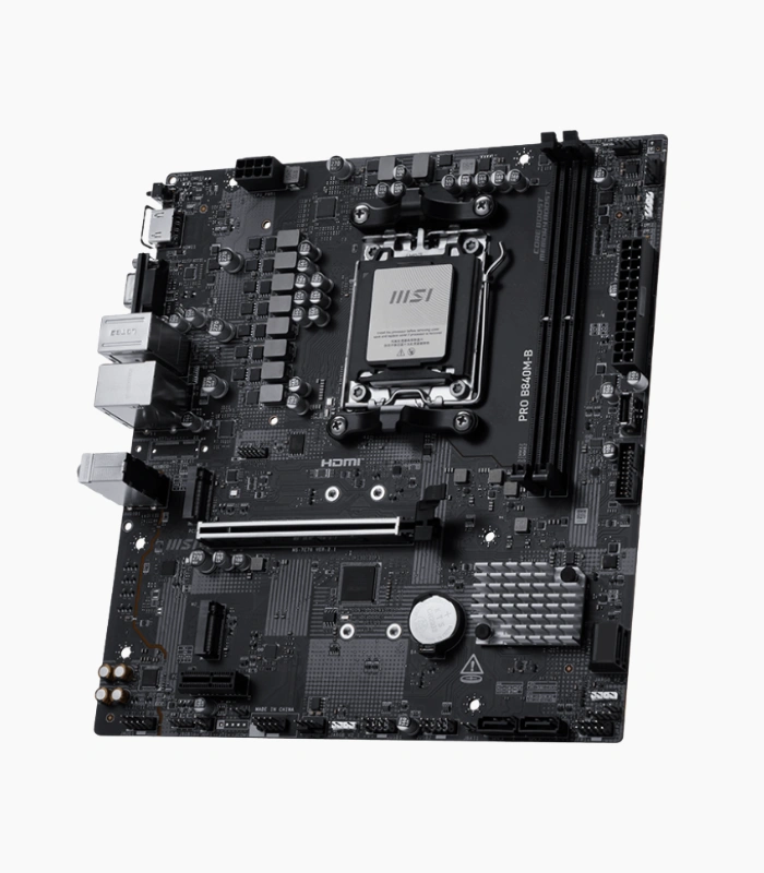 La MSI PRO B840M-B está diseñada con muchas características exclusivas de MSI, PCIe 4.0 M.2, EZ PCIe Clip II, 2.5G LAN y Front Type-C, preparada para los procesadores AMD Ryzen™ serie 9000.