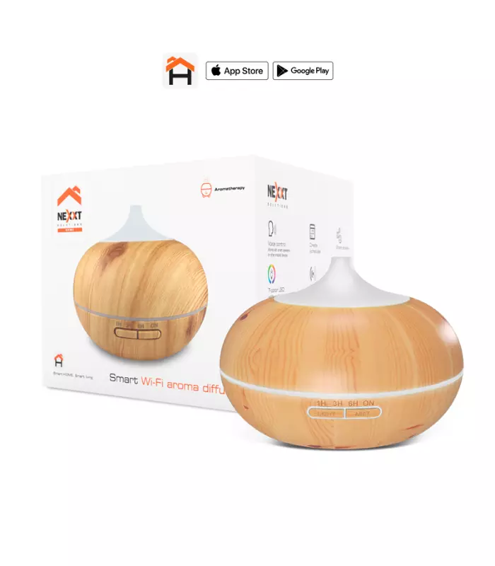 El NHA-A600 es un difusor de aroma inteligente con conexión Wi-Fi de la marca Nexxt Solutions Home. Permite la aromaterapia y cuenta con funciones inteligentes controlables a través de una aplicación móvil.