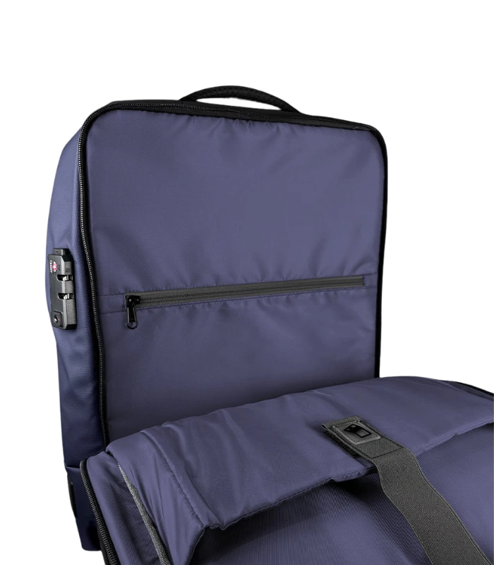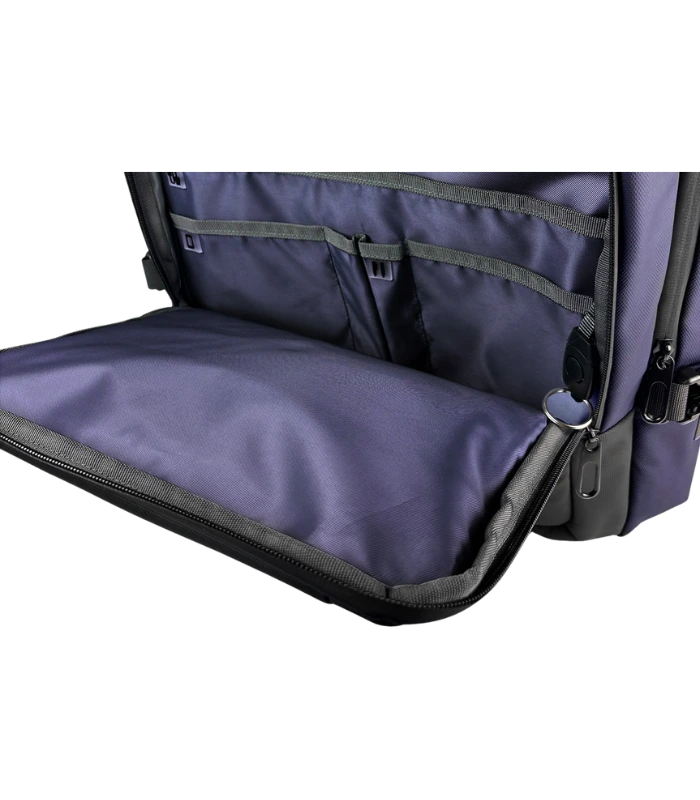 - Dos compartimientos principales con cremallera, uno para uso general, otro para laptop