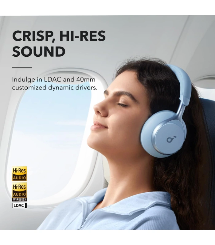Sumérgete en una potente calidad de audio con los auriculares Bluetooth supraaurales Soundcore by Anker Space One. Estos auriculares con aislamiento de sonido utilizan tecnología LDAC para reproducir audio de alta resolución, permitiéndote escuchar cada detalle con una claridad cristalina. Están equipados con un micrófono mejorado con IA para ofrecer llamadas de voz nítidas.