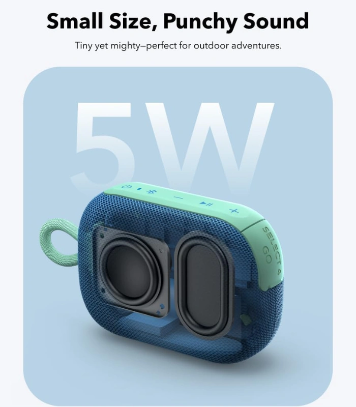 El Parlante Bluetooth Portátil Soundcore Select 4 Go de la marca Anker es un dispositivo ultracompacto, resistente (IP67), con sonido de 5W, hasta 20 horas de batería y conectividad Bluetooth, ideal para actividades al aire libre.