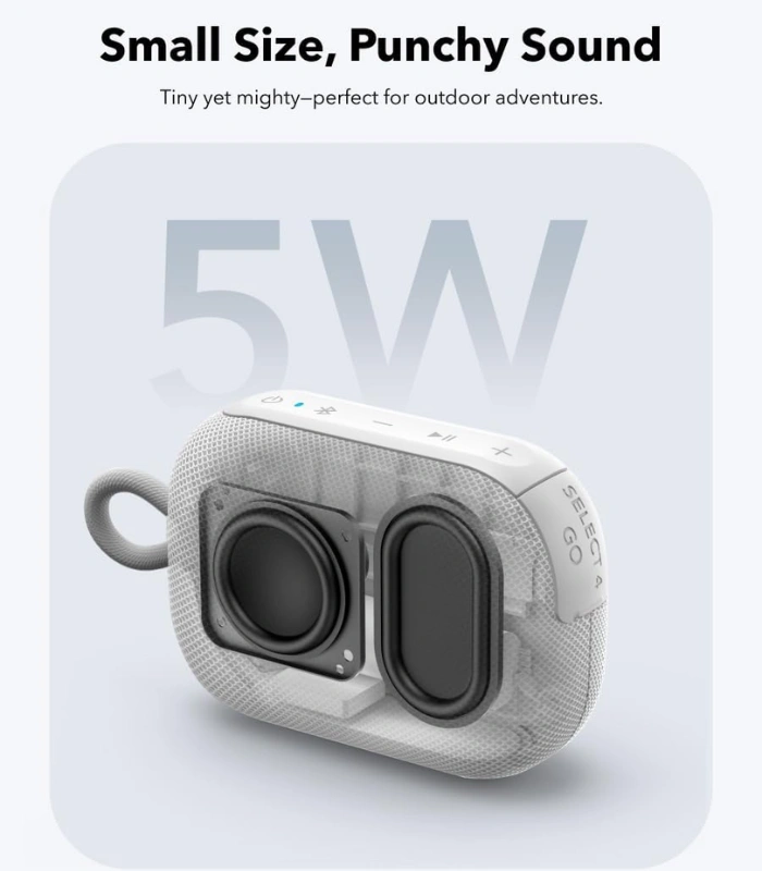 El Parlante Bluetooth Portátil Soundcore Select 4 Go de la marca Anker es un dispositivo ultracompacto, resistente (IP67), con sonido de 5W, hasta 20 horas de batería y conectividad Bluetooth, ideal para actividades al aire libre.
