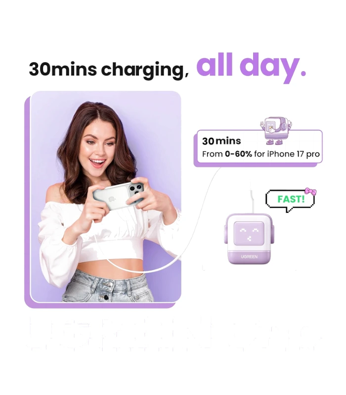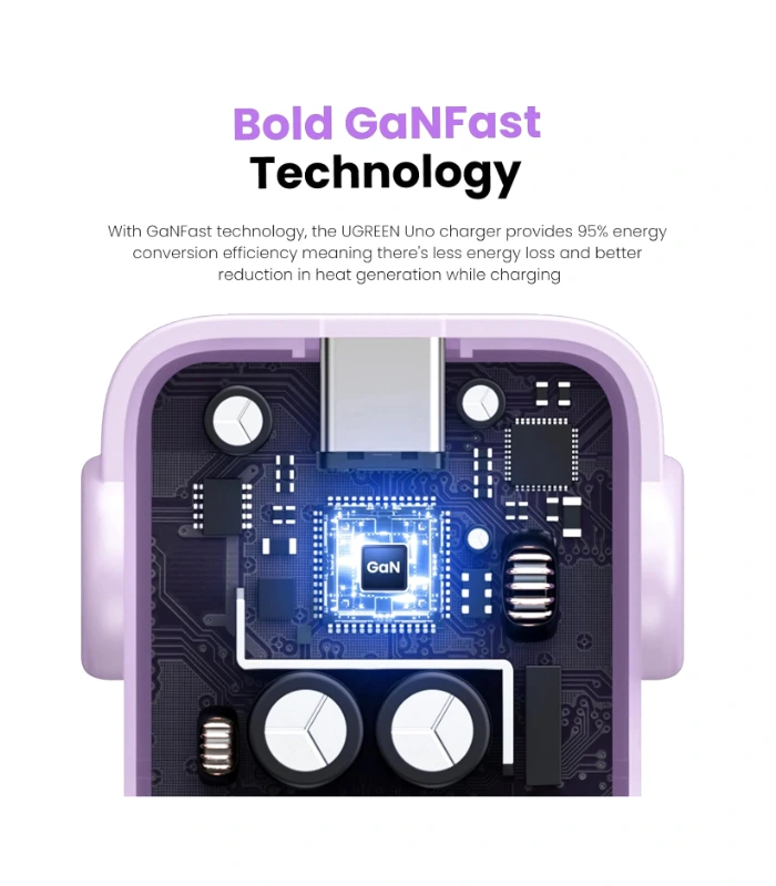 UGREEN Uno 30W — Cargador de carga rápida GaN, 1 puerto USB-C – Lila