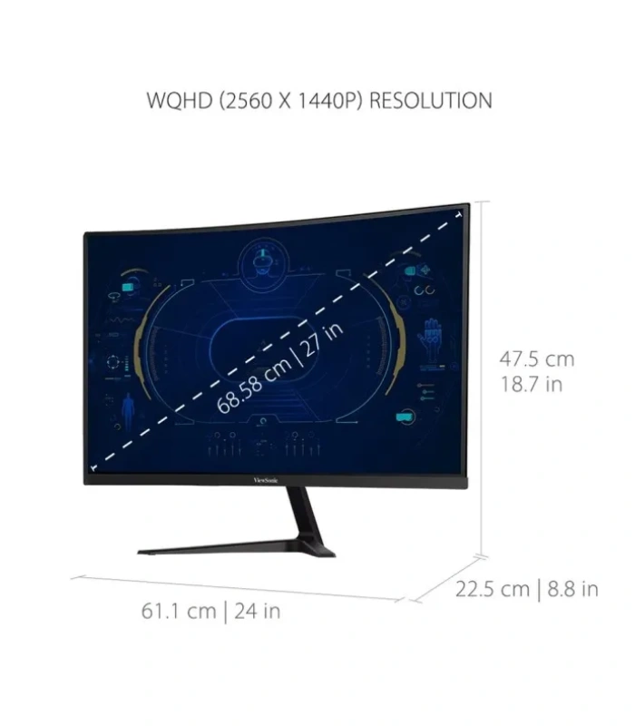 El monitor VX2718-2KPC-MHD de ViewSonic con excelente resolución WQHD de 2560 x 1440 y una pantalla curva inmersiva de 1500R ofrece una increíble experiencia de visualización para trabajar o para jugar.
