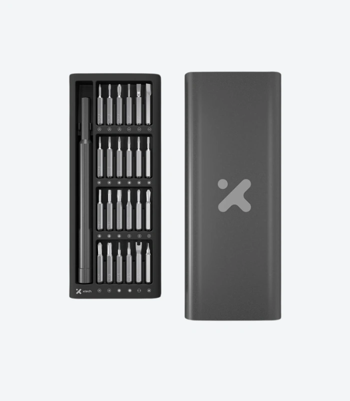 El Xtech Kit de destornillador incluye 24 puntas intercambiables—Philips, plano, Torx, Pentalobe, triángulo, hexagonal, Tri-Wing, Spanner y más—para cubrir todo tipo de reparaciones cotidianas con facilidad y exactitud.