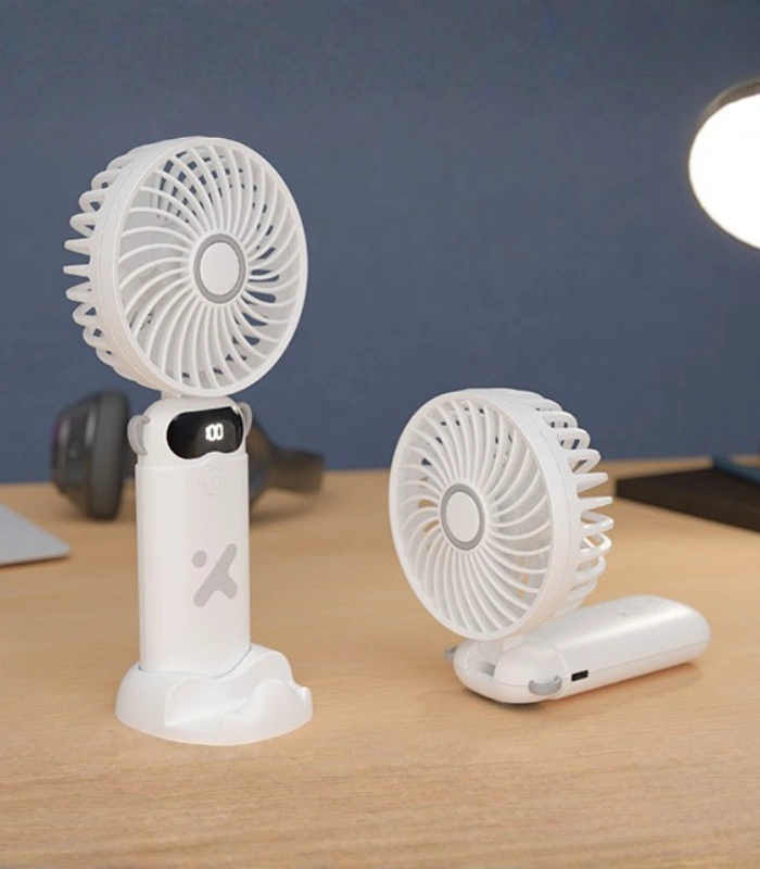El Xtech XTA-900 es un mini ventilador portátil recargable con 6 velocidades, diseñado para uso manual, de escritorio o colgado al cuello.