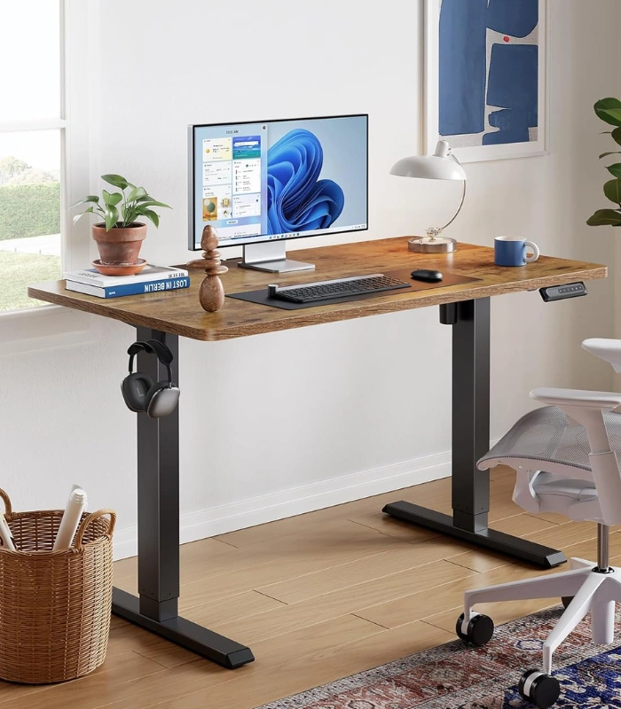 $249.99HUANUO Essential Standing Desk Vintage Brown — 55″ x 24″, Escritorio eléctrico de altura ajustable, Marrón Vintage, no se entrega armada