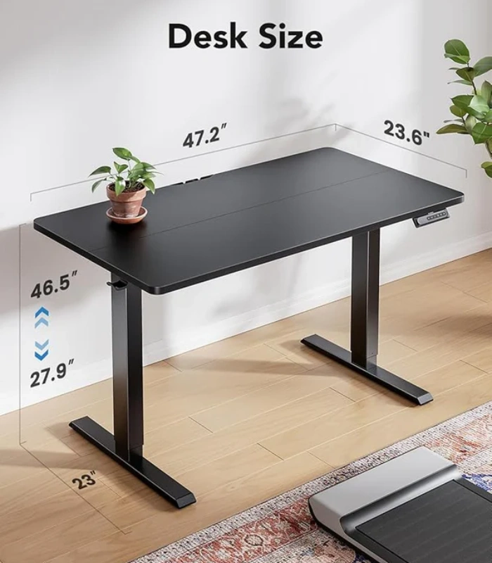 HUANUO Essential Standing Desk Black — 48″ x 24″, Escritorio eléctrico de altura ajustable, negro, no se entrega armada